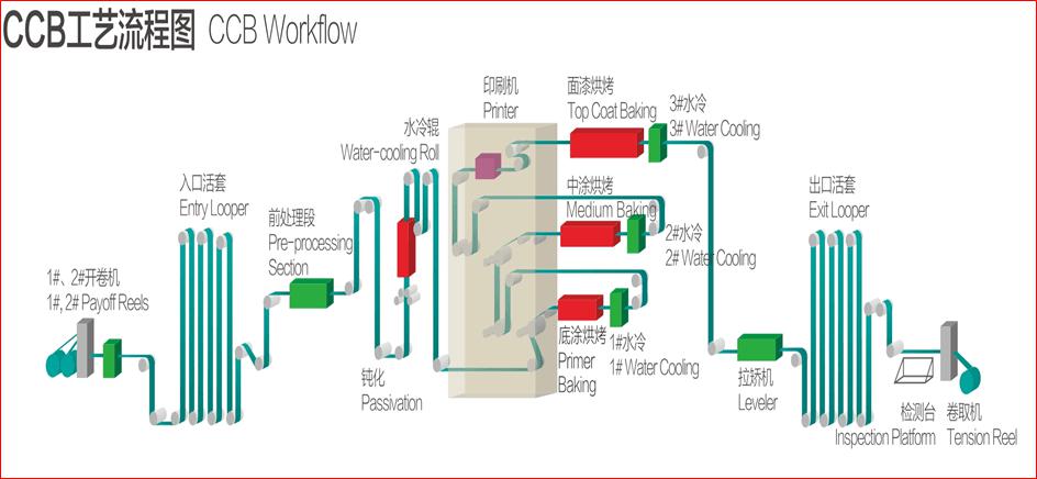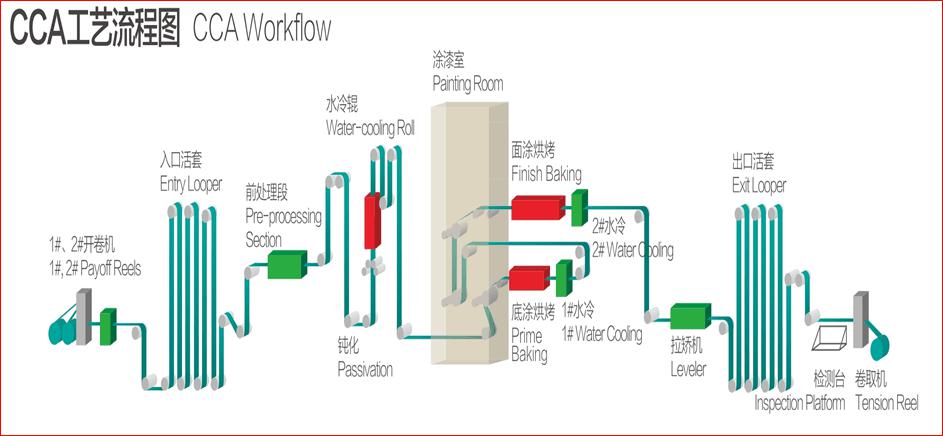 鍍鋁鋅鋼卷的耐蝕性雖強,但為了改變單調(diào)、無變化的表面,在鍍鋁鋅鋼卷表面經(jīng)涂裝、烘烤等作業(yè),生產(chǎn)出美麗、耐蝕性更高的鍍(鋁)鋅烤漆鋼卷。