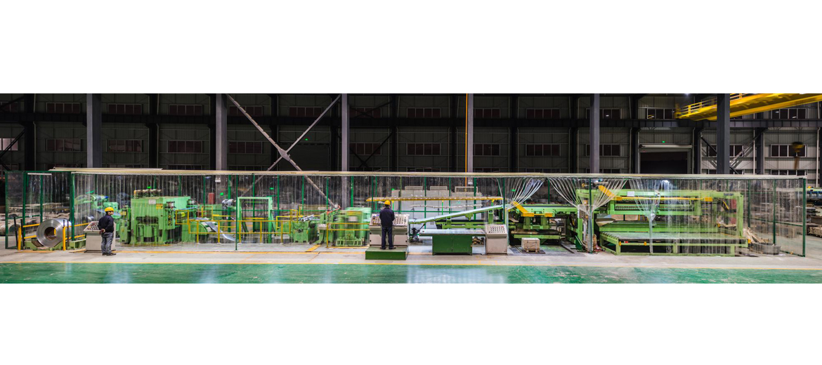 KP-002開平機組,系進口的專業(yè)超薄板鋼卷整平裁剪設(shè)備。該機采用性能優(yōu)越的日本“RELIANCE”直流控制系統(tǒng),主要電機、電氣元件、軸承等零件均為高品質(zhì)名牌元件,確保了該機高速、穩(wěn)定的運行。加工原料鋼卷重量最大可達7噸,直徑1500mm,寬度800mm,有19輥精整機構(gòu),產(chǎn)品平坦優(yōu)良;該機組還配備了日本專利的高速連續(xù)回旋式剪床,鋼板經(jīng)NC計算機控制定尺裝置精密計算,產(chǎn)品精度優(yōu)異,生產(chǎn)效率一流,可裁剪0.25-2.0mm厚度的鋼板,疊料站可收150mm-5000mm的板材,并配備平行分離式無傷收料托架,從而使產(chǎn)品擁有整齊的外型。主要加工冷軋、鍍鋅、烤漆、馬口鐵、不銹鋼、鋁合金、銅合金等材料。
